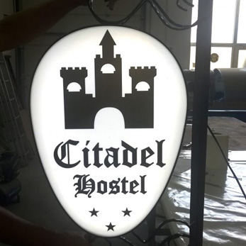 - firme publicitare din fier forjat la care adaugam casete luminoase din plexiglas iluminate (cu leduri din interior) sau neluminate.